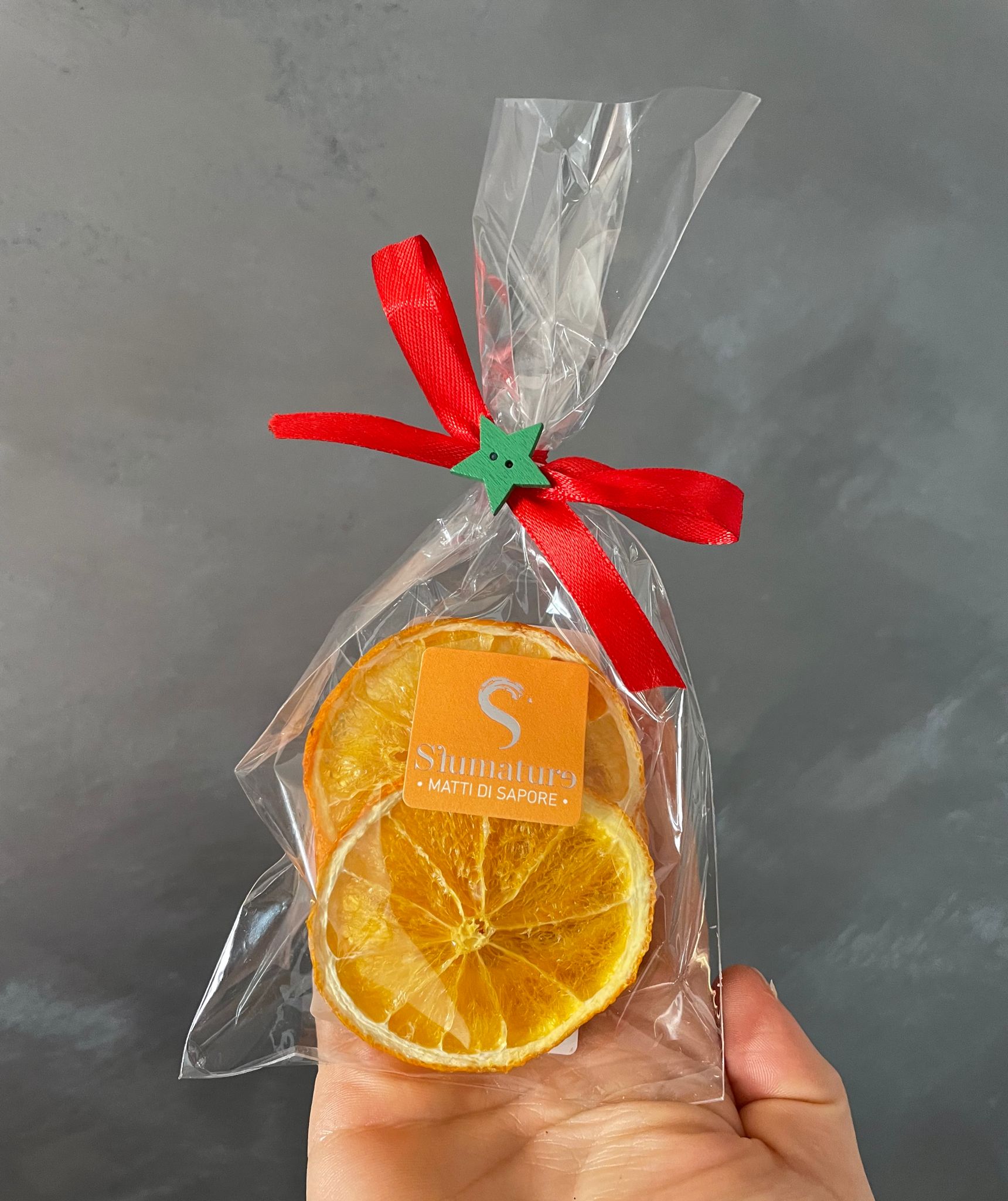 Arancia disidratata con cura ed in modo naturale, non trattata, senza aggiunta di zuccheri e senza additivi. Ideale per uno spuntino sfizioso, per arricchire gli aperitivi e nelle tisane.